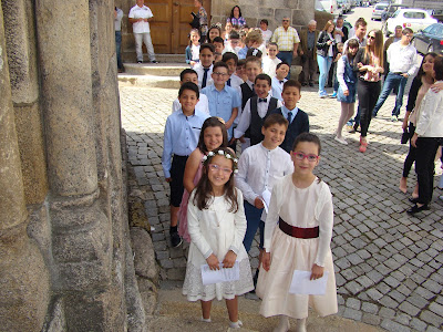 Como pai, paroquiano e Cristão Católico, quero agradecer a todos quantos contribuíram para esta festa, para este passo tão importante na vida cristã destas crianças. Em primeiro lugar às suas catequistas e ao Rev. Pe. Carlos. Também a todas aquelas pessoas que têm contribuído para a sua caminhada e para a edificação desta paróquia, desta casa de Deus pai. Foi uma festa linda e marcante! Quero apenas realçar um aspeto: já assisti a algumas comunhões em outras paróquias e, perdoem-me a comparação - pois somos todos membros do mesmo corpo que é a Igreja universal - a cerimónia nesta Paróquia, que é a minha, foi a mais bonita! Sabem o que teve de tão especial?! O facto de os meninos comungarem, pela sua primeira vez, acompanhados pelos pais (!) Em mais nenhuma paróquia se vê isto. É lindo, tocante e marcante. É o exemplo dos pais que acompanham as crianças nesta caminhada! É a Igreja doméstica (que deve ser a primeira) com lugar e espaço na Igreja Paroquial. Bem hajam pela ideia e pelo gesto tão marcante e distinto! Obrigado a todos, por tudo! Um pai agradecido.